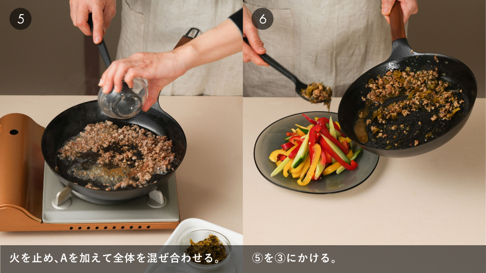 全く縁のない2つの食材のようで実は相性抜群なのが高菜と明太子。九州発祥の素材が出会うことで1+1は4にも5にも味わい深くなりました。たっぷりの明太子が濃厚な旨味とつぶ感を与え、甘辛い味付けで至福のおいしさに。乳製品との相性が◎