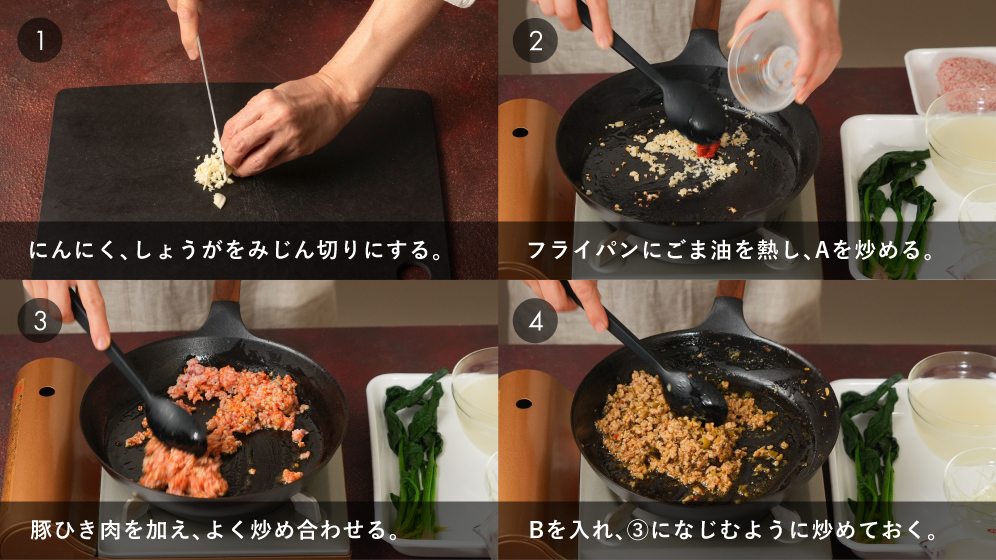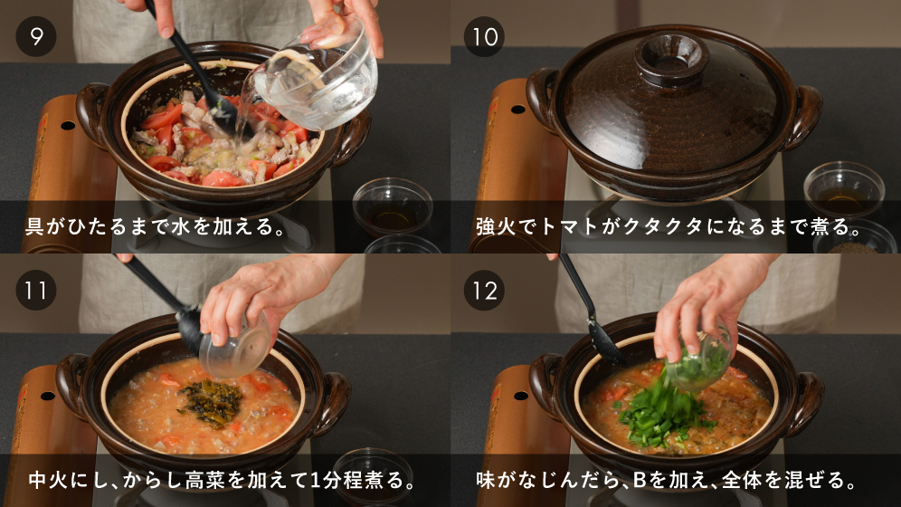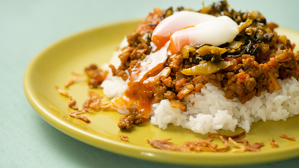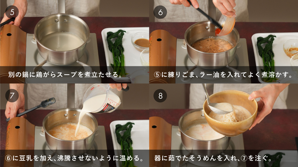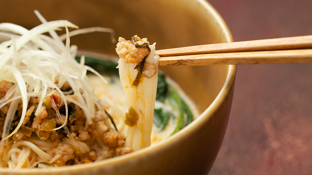 ピリ辛を豆乳でまろやかに。高菜入りみその旨さも際立ちます。