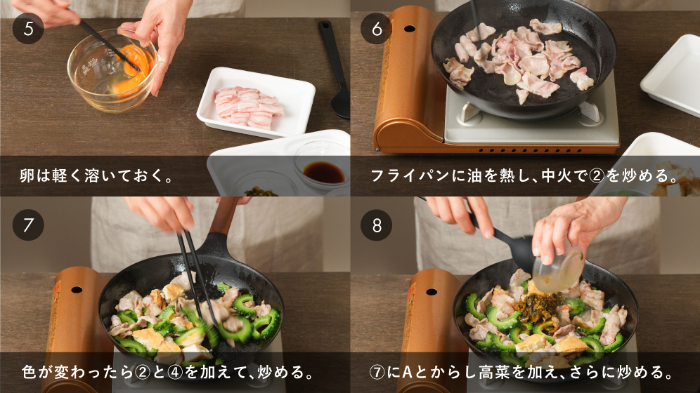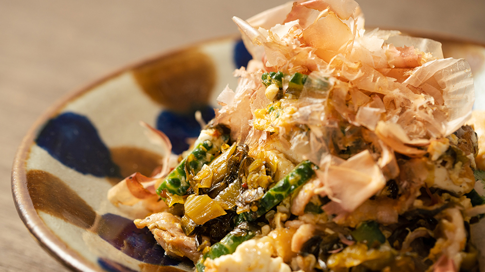 ゴーヤの苦みと高菜の旨みでお酒もごはんも進みます!