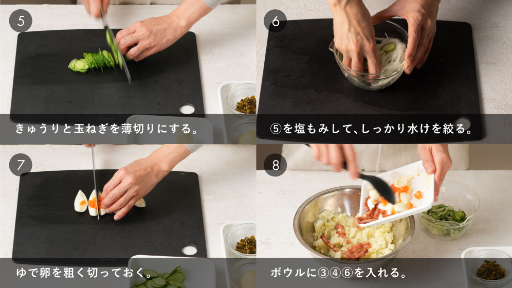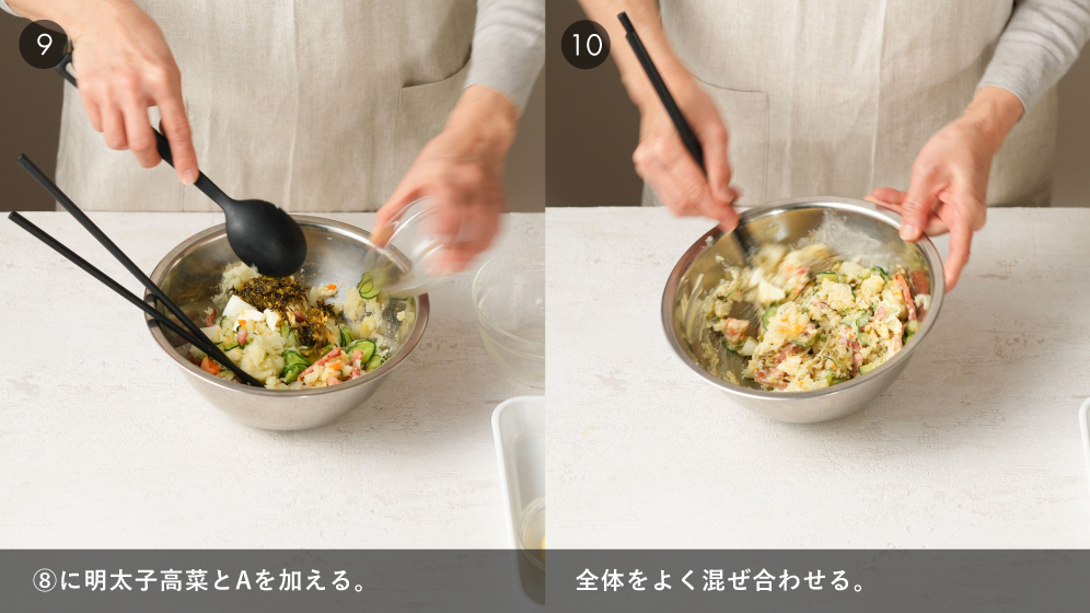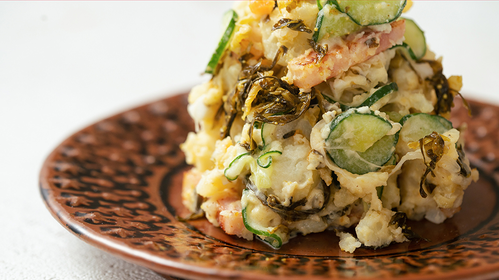 みんな大好きポテサラ!高菜をプラスでおつまみにも。