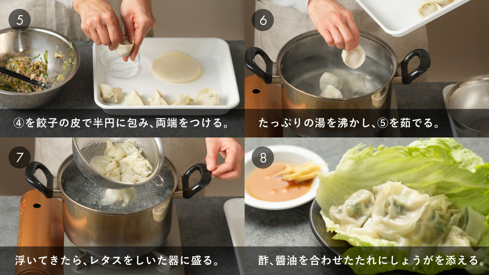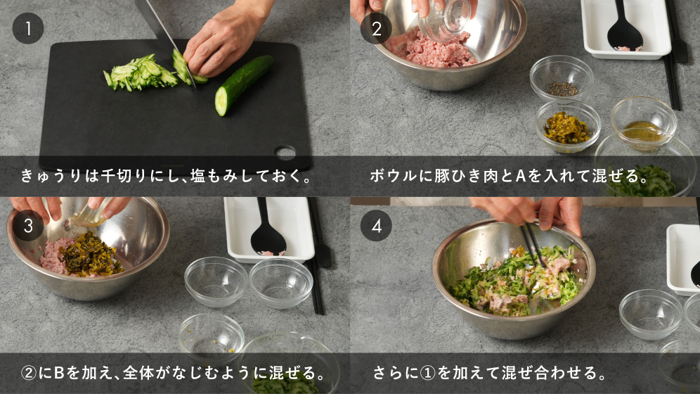 きゅうりと高菜の食感が楽しい!さっぱりした夏向きの餃子です。